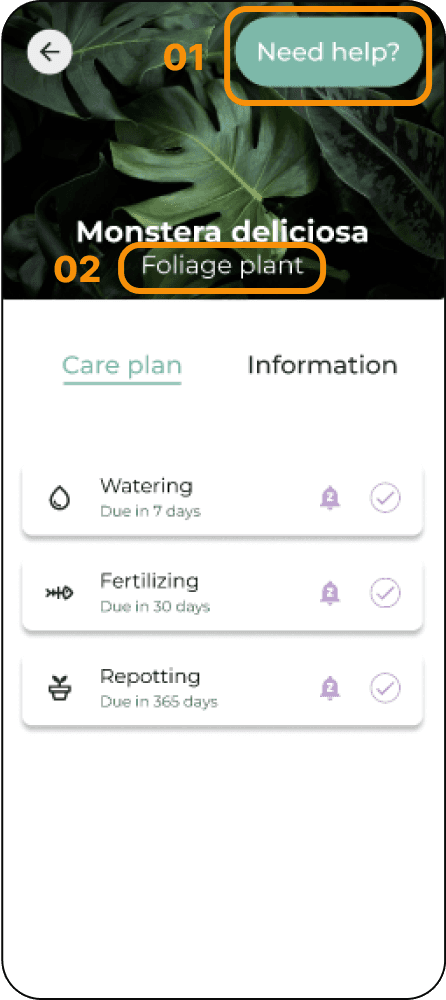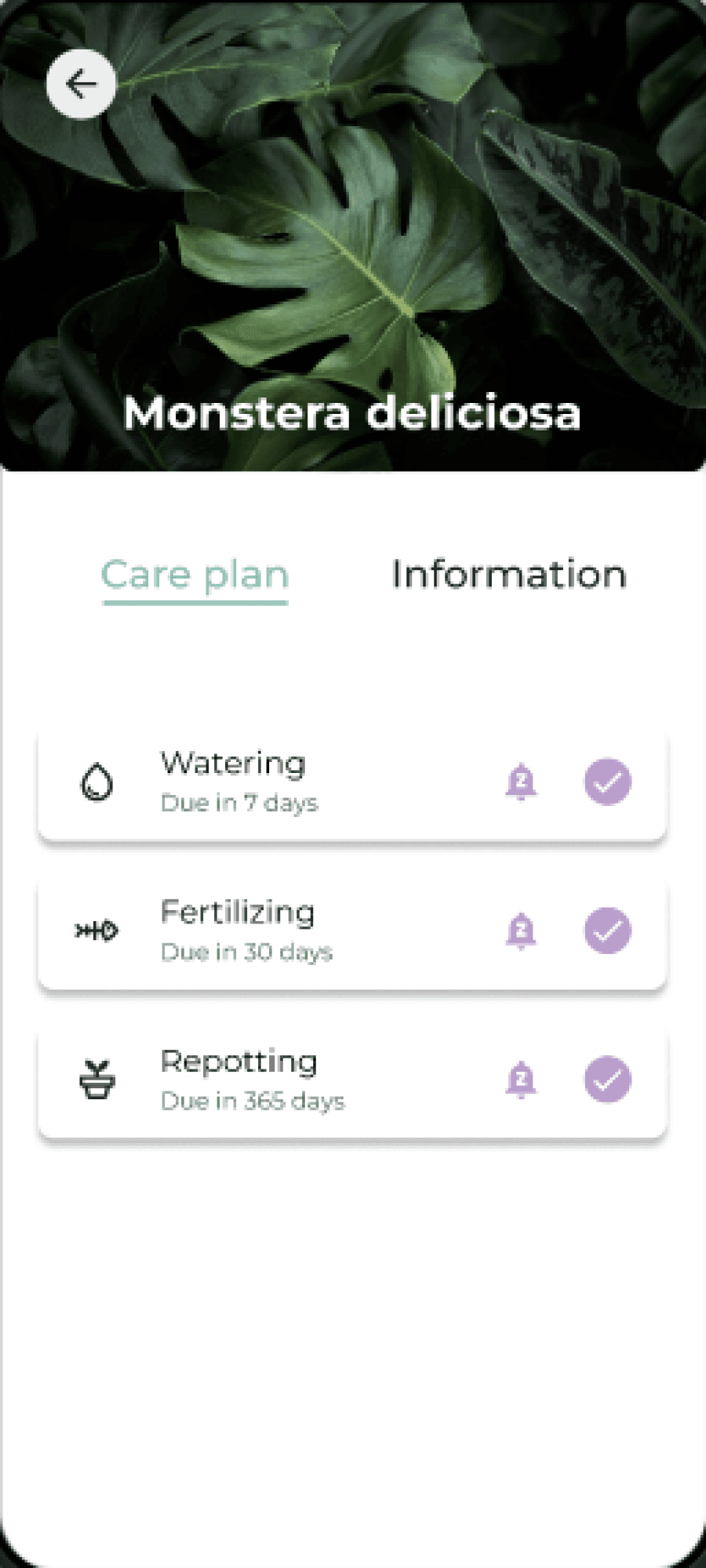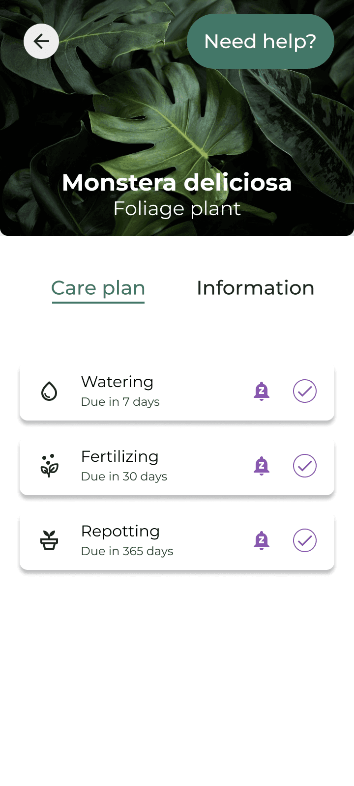 Keeping track of infrequent plant care tasks like fertilizing and repotting