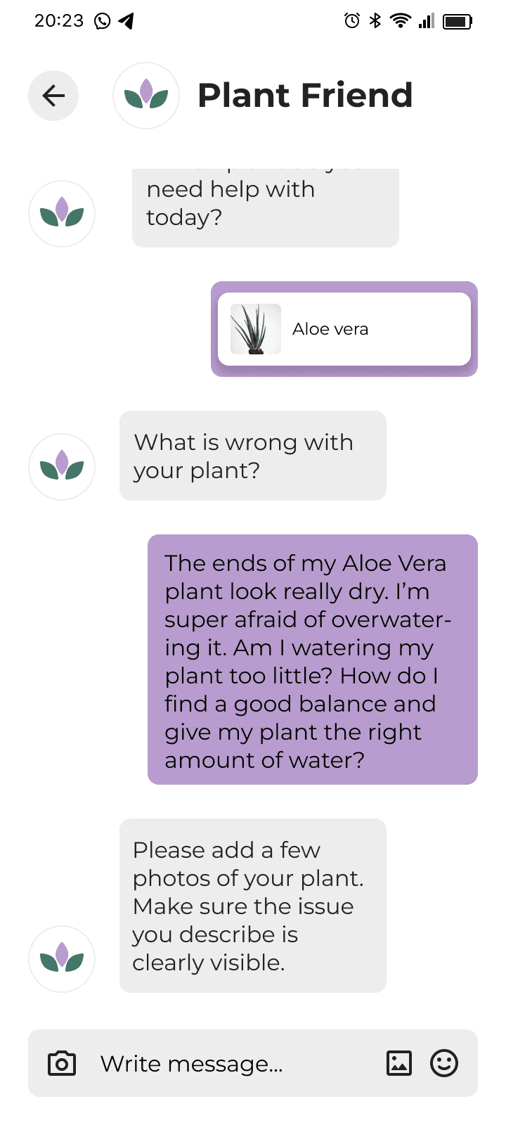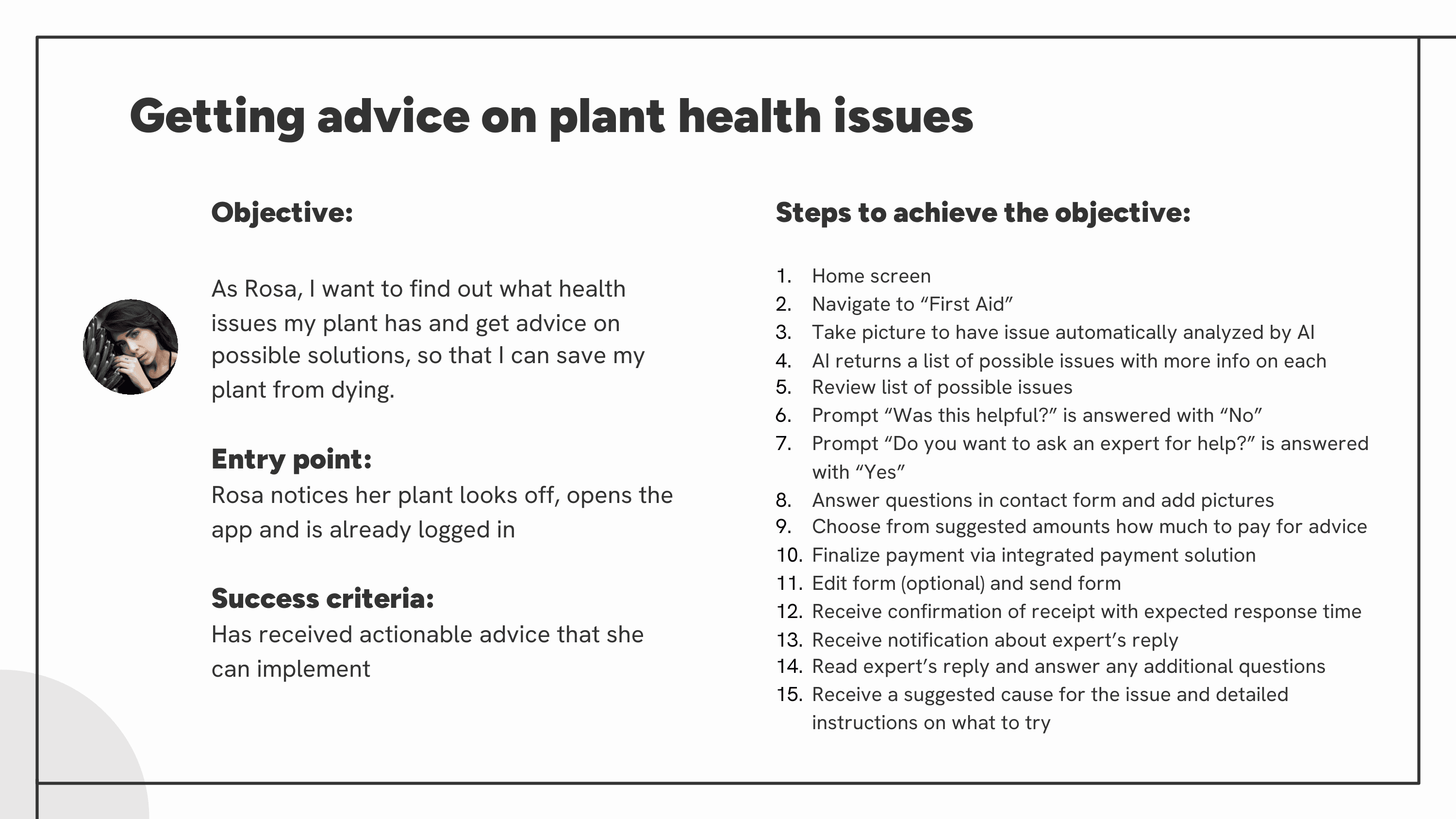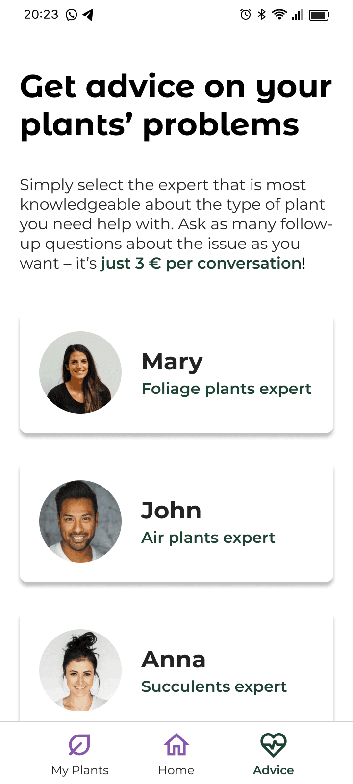 Competitor analysis revealed a gap in the market regarding the availability of real-time exchange with plant care experts.