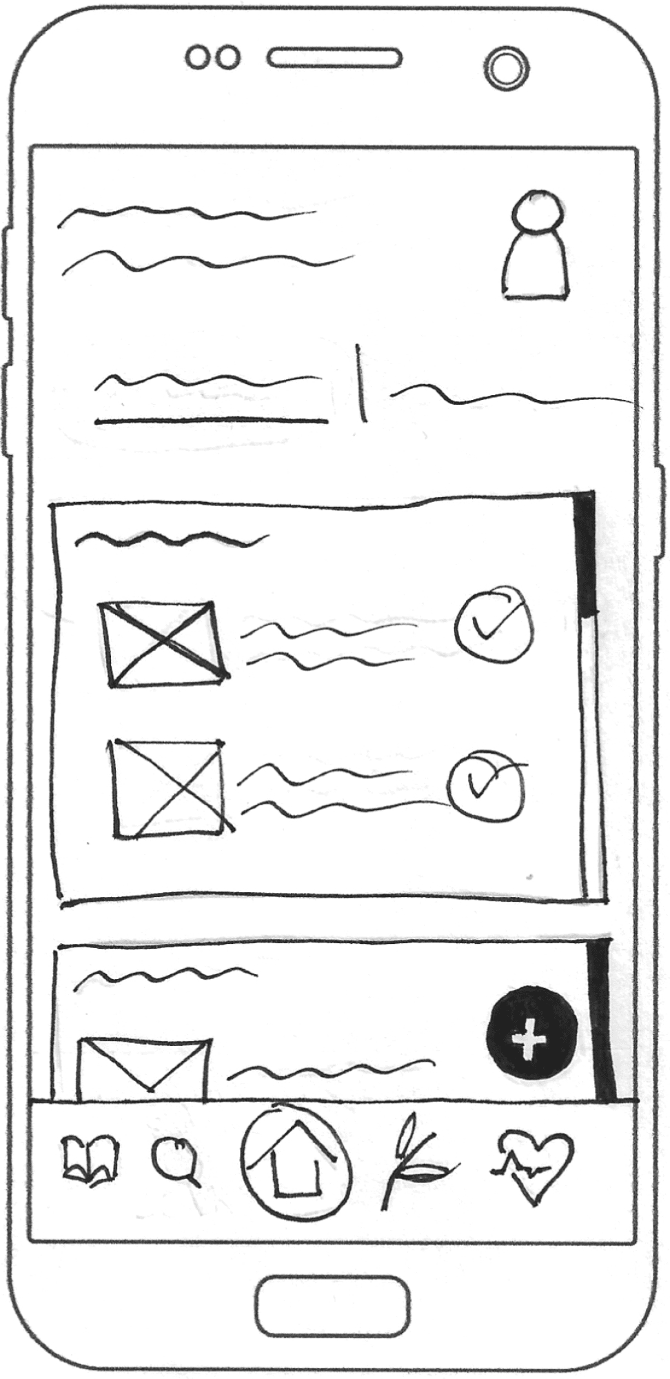 One example of this is the evolution of the Home screen from low- to mid- and high-fidelity. I could have probably skipped the mid-fidelity stage for the Home screen, as I already had a clear image in my mind from the pen & paper sketches.