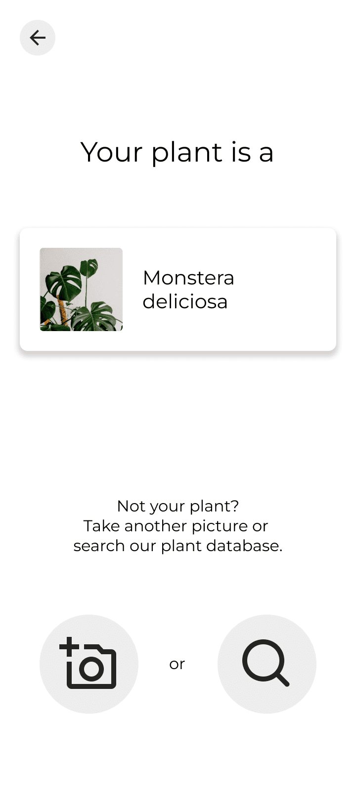 Added a confirmation screen to the onboarding process, showing the identified plant and asking users to verify its correctness